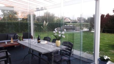 Blik op de tuin en in het vakantiehuis, parkeermogelijkheden direct naast het huis, bergruimte voor fietsen en gebruik van wasmachine.